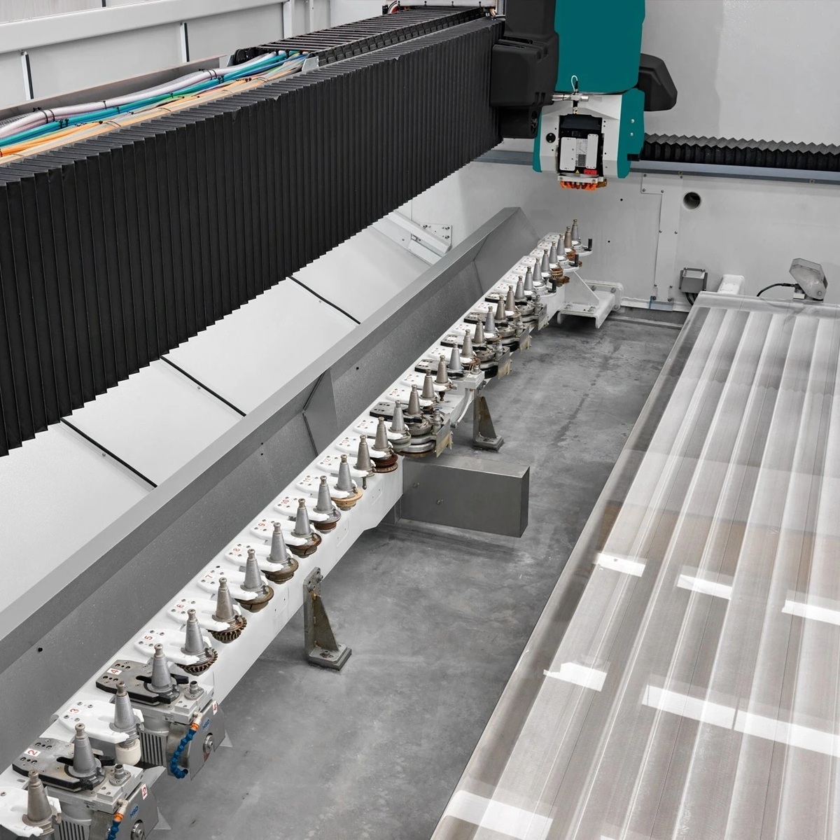 Biesse Intermac Multi Pro S H5S is a high-performance CNC machining center developed for advanced faceting and precise processing of flat glass. The machine is designed for production environments with high demands for flexibility, surface quality, and process control – enabling complex geometries and advanced glass applications.