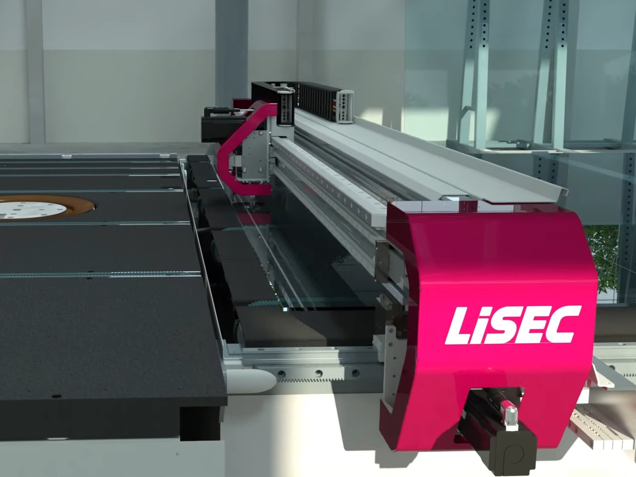 The cutting table is based on LiSEC Direct Cutting Technology with portal movement in the X-axis, ensuring high accuracy and stable cutting results with tolerances down to ±0.2 mm. Cutting and grinding pressure are automatically regulated, reducing the need for manual adjustments and ensuring consistent quality regardless of glass thickness and coating.