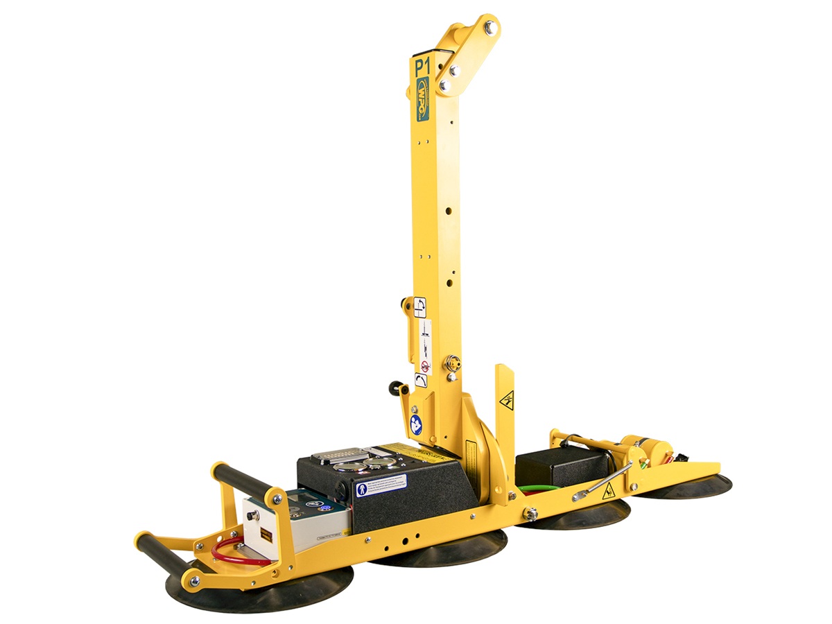 WPG P1-1104DC3 is a linear vacuum lifter developed for safe handling of glass in production and assembly. The model features four suction cups mounted on a compact support beam and is designed for flat, smooth, and non-porous materials. It is well suited for window and facade installation, as well as internal handling in workshops and factories where stable and controlled lifting is required.