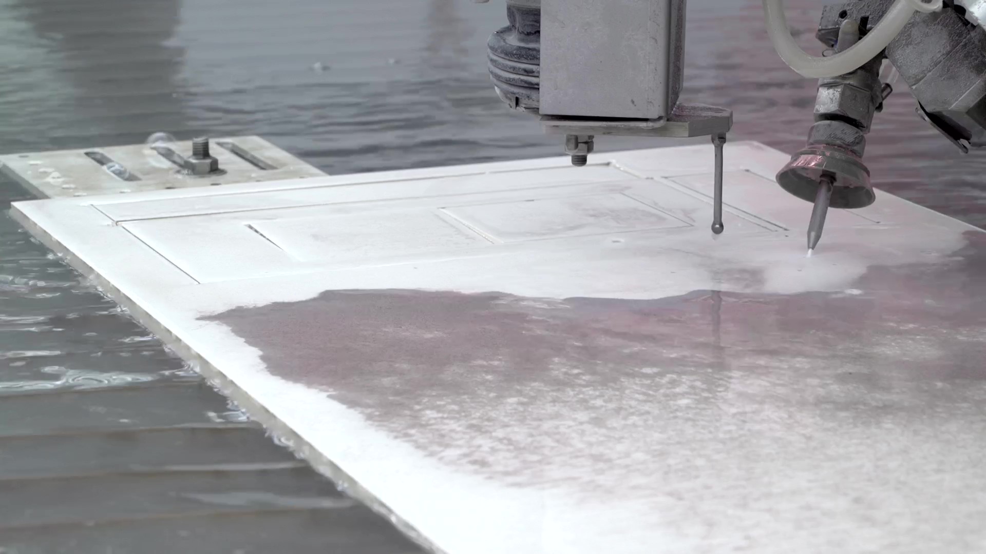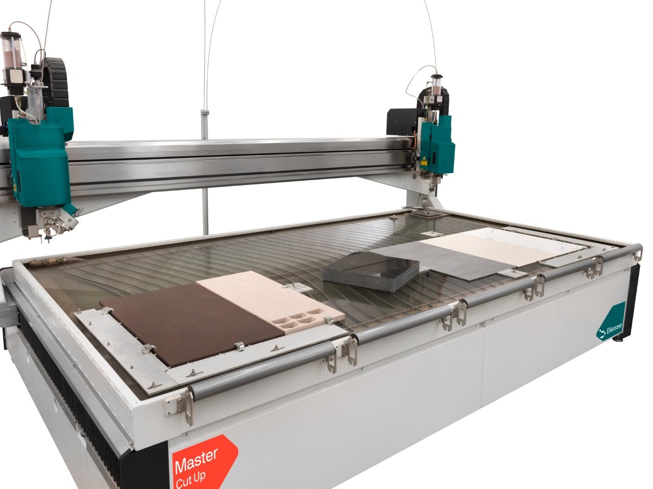 Biesse Master Cut Up J O is a 5-axis waterjet cutter for processing complex shapes with high demands on precision and flexibility. The machine is developed for tasks where traditional cutting methods are not sufficient, in both stone and glass.